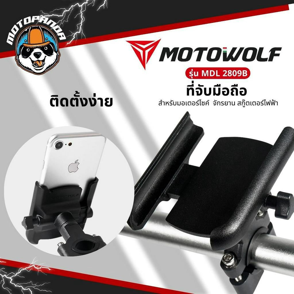 MOTOWOLF รุ่น 2809B จับมือถือ ที่จับมือถือมอเตอร์ไซค์ จับแฮนด์บาร์ จับก้านกระจก จับโทรศัพท์มือถือ ของแท้ 100 %